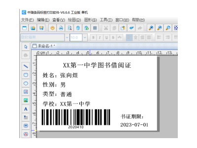 至此图书借阅证标签上的文字和条形码就添加完成了,接下来的文章中我们会详细讲下如何用中琅条码标签批量打印软件来批量导入图书借阅者的照片,有兴趣的小伙伴请继续关注。